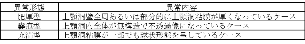 ③上顎洞の病変の有無(上顎洞炎、嚢胞、腫瘍の有無、上顎洞粘膜肥厚の有無)