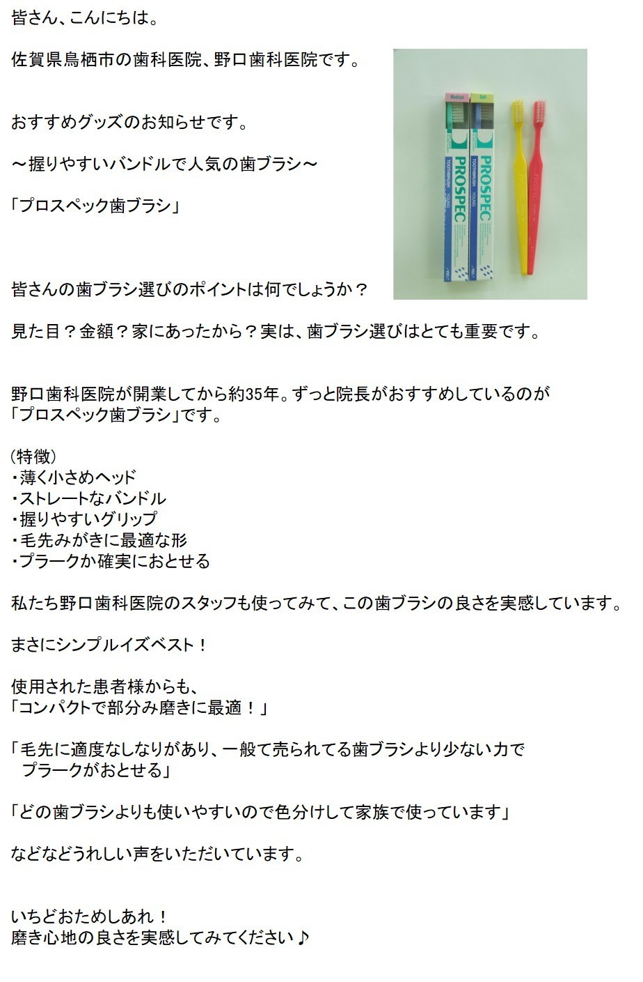 今月のオススメデンタルグッズ「プロスペック歯ブラシ」